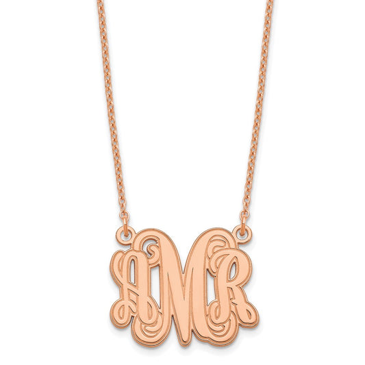 14k Rose Gold Plated 925 Sterling Silver Monogram Plate with Chain Necklace