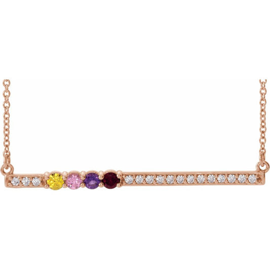 14k Rose Gold Round Shape 4-Stone Bar Family Necklace (9.5x3.5mm, Mounting Only, Not All Stones Included), 16-18"