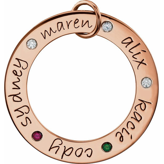 14k Rose Gold Round Shape 5-Stone Posh Mommy Engraveable Posh Loop Family Personalized Pendant for Approximately 1/6 cttw (Mounting Only, Not All Stones Included, 31.3mm)