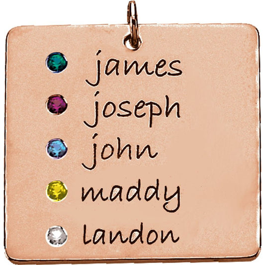 14k Rose Gold Round Shape 5-Stone Posh Mommy Engraveable Square Shape Family Personalized Pendant for 1/6 cttw (25.3x25.3mm, Mounting Only, Not All Stones Included)
