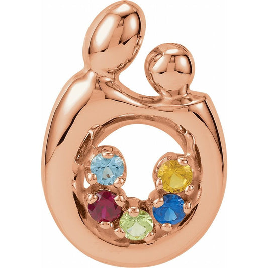 14k Rose Gold Round Shape 5-Stone Mother and Family Slide Pendant (Mounting Only, Not All Stones Included)