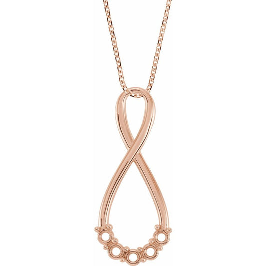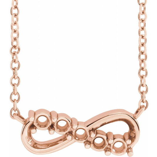 14k Rose Gold Round Shape 5-Stone Infinity-Inspired Family Necklace (8.65x23.05mm, Mounting Only, Not All Stones Included), 16-18"