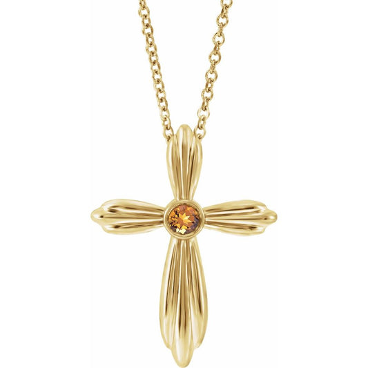 14k Yellow Gold Round Shape Citrine Religious Cross Necklace (11.5x6.1mm), 16-18"