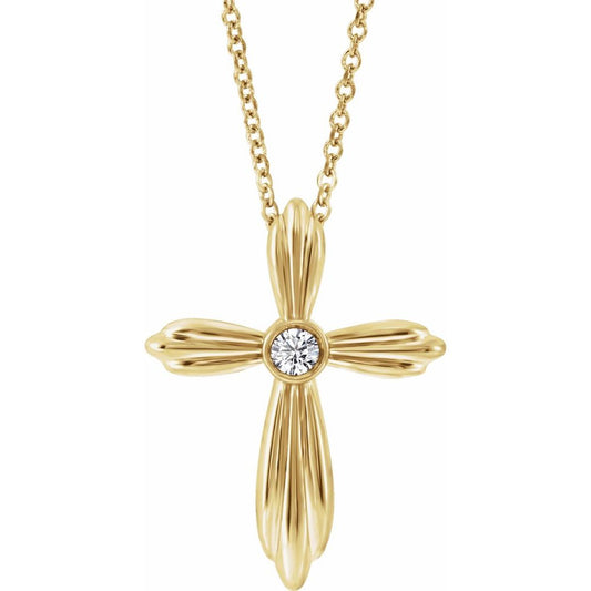 14k Yellow Gold Round Shape Diamond Bar Religious Cross Necklace (.03 cttw, G-H, I1, 20x7mm), 18"