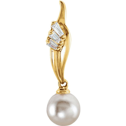 14k Yellow Gold 7.5-8mm Freshwater Cultured Pearl Crown Drop Dangle Earrings