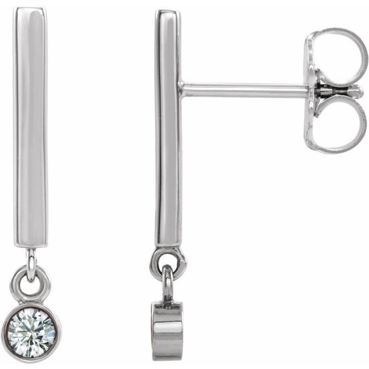 14k White Gold Diamond Bar Drop Dangle Earrings (G-H, 1/8 cttw, SI2-SI3)