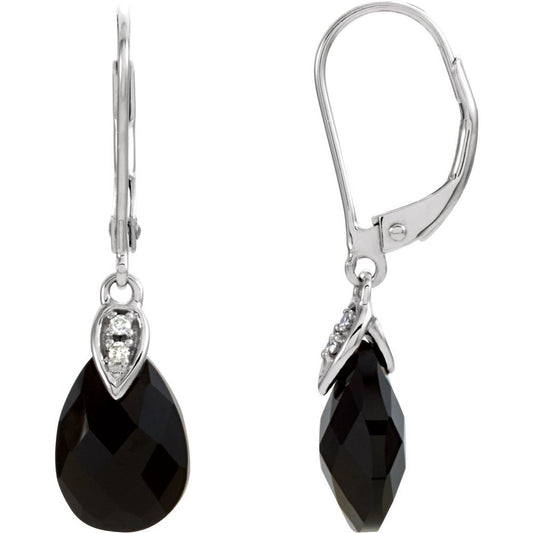 14k White Gold Black Onyx and 1/5 cttw Diamond Freeform Drop Dangle Earrings (H, I1)