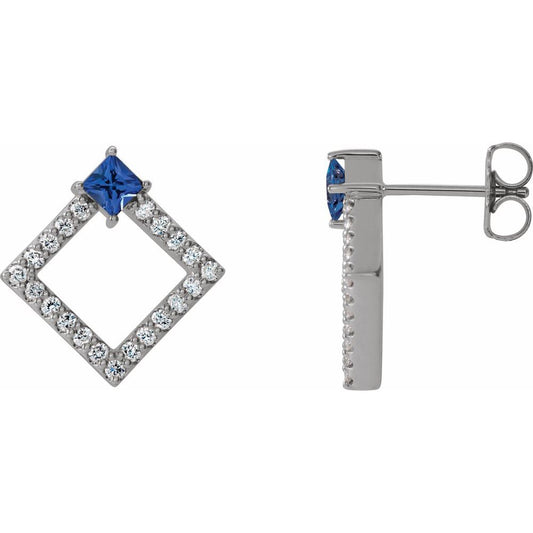 14k White Gold Blue Sapphire and 1/2 cttw Diamond Geometric Drop Dangle Earrings (G-H, I1)