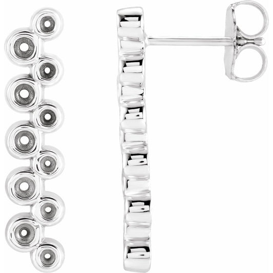 14k White Gold Bezel-Set Bar Drop Dangle Earrings Mounting (Left Side Mounting Only, Not All Stones Included)