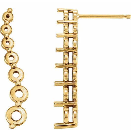 10k Yellow Gold Journey Drop Dangle Earrings Mounting (Right Side Mounting Only, Not All Stones Included)