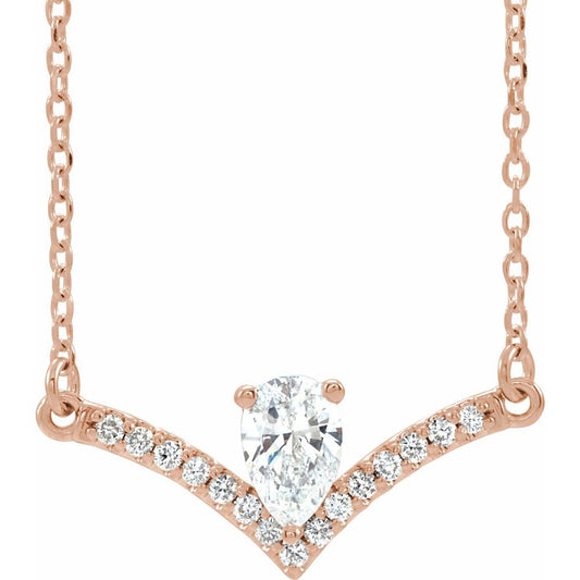 14k Rose Gold Pear Shape Lab-Grown Diamond Bar Necklace (1/3 cttw, G-H, I1, 27.52x5.24mm), 16"