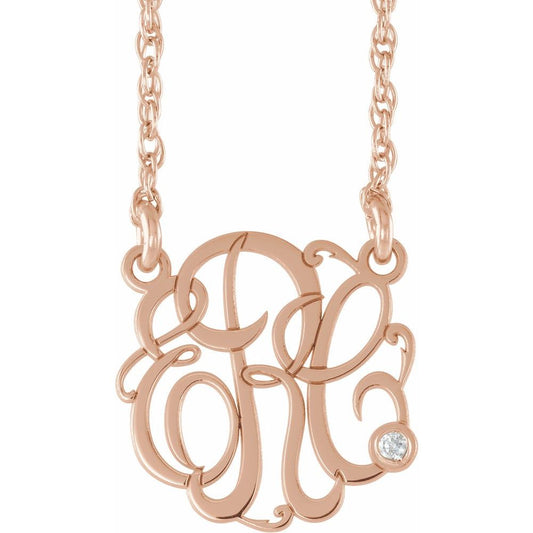 14k Rose Gold Round Shape Diamond 3 Initial Script 15mm Monogram Personalized Necklace (.02 cttw, H-I, I1), 18"
