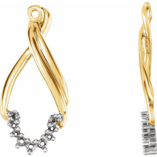 18k White and Yellow Two Tone Gold Earring Mounting Jacket (Only One Piece Sold, Not the Pair, Mounting Only, Not All Stones Included)