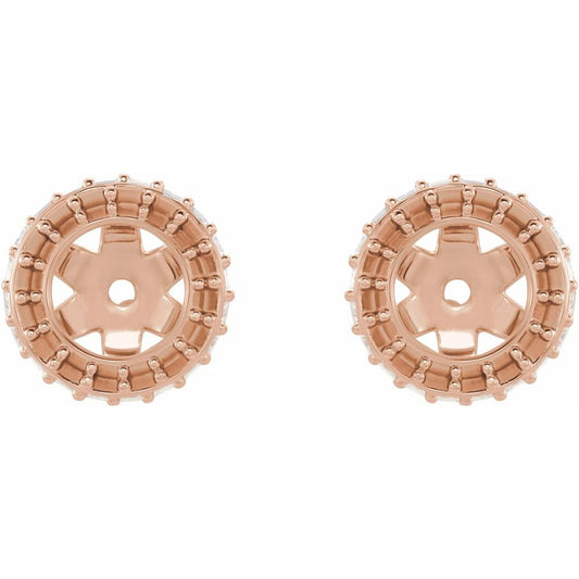 18k Rose Gold 7.4mm Interior Diameter Halo-Style Earring Mounting Jacket (Only One Piece Sold, Not the Pair, Mounting Only, Not All Stones Included)