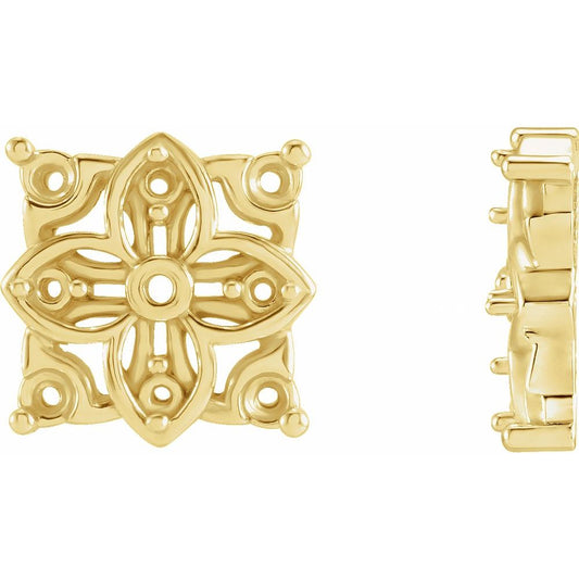 14k Yellow Gold Floral-Inspired Earring Jacket (Only One Earring Piece Sold, Not the Pair, Mounting Only, Not All Stones Included, 12.75x12.75mm)