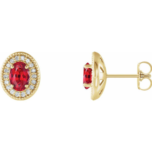 14k Yellow Gold Ruby and 1/8 cttw Diamond Halo-Style Stud Earrings