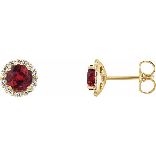 14k Yellow Gold Mozambique Garnet and 1/8 cttw Diamond Halo-Style Stud Earrings
