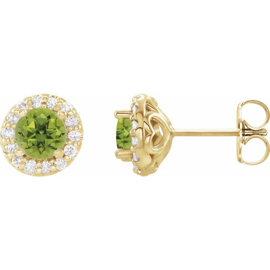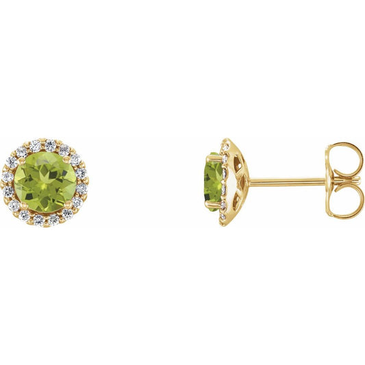 14k Yellow Gold Peridot and 1/8 cttw Diamond Halo-Style Stud Earrings