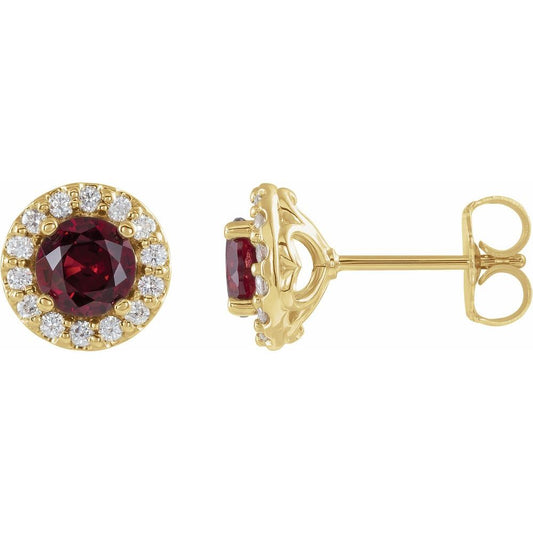 14k Yellow Gold Lab-Grown Ruby and 1/4 Diamond Halo-Style Earrings (G-H, I1)