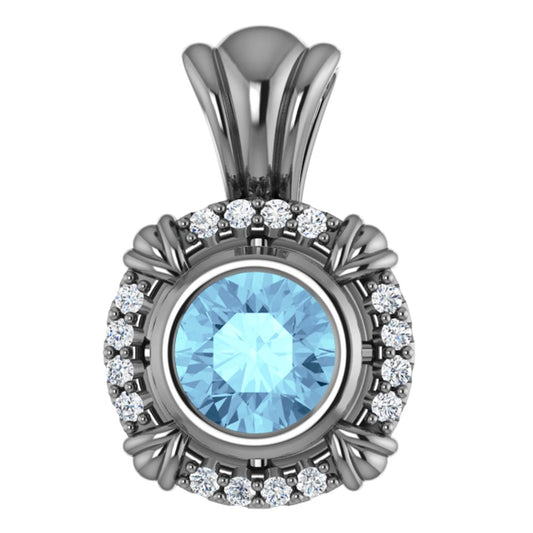 Platinum Round Shape Aquamarine and .08 cttw Diamond Halo-Style Pendant