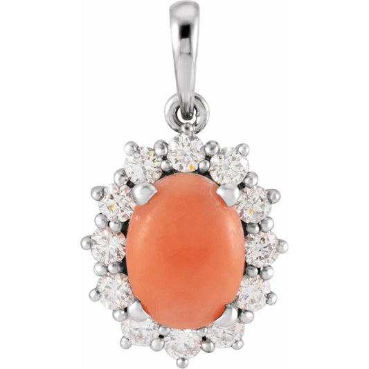 Platinum Oval Shape Pink Coral and 1/3 cttw Diamond Halo-Style Pendant (19.77x11.45mm, G-H, SI2-SI3)