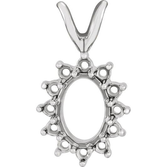 Semi-Polished 14k White Gold 7x5mm Oval Shape Halo-Style Pendant for Approximately 7/8 cttw (Mounting Only, Not All Stones Included, 15.3x7.5mm)