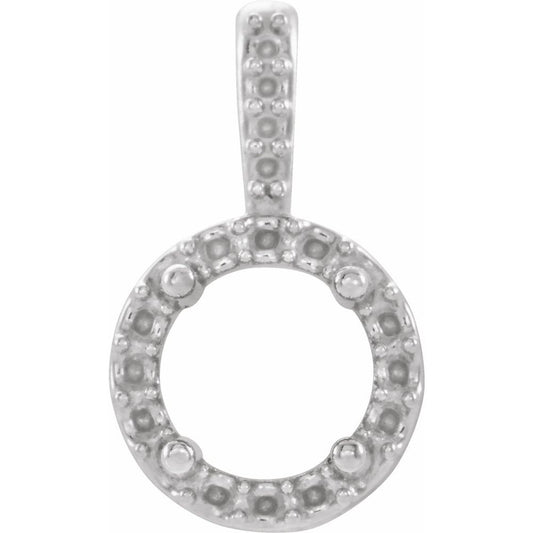 Semi-Polished 14k White Gold 7mm Round Shape 4-Prong Halo-Style Cabochon Pendant for Approximately 1 1/3 cttw (Mounting Only, Not All Stones Included, 14.7x9.4mm)