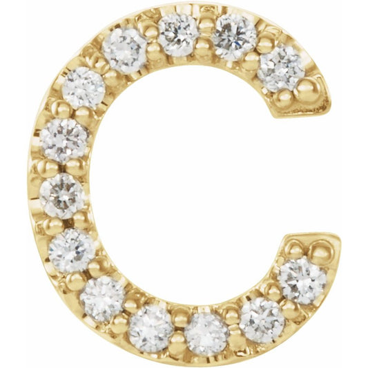 14k Yellow Gold Diamond Single Initial C Earring (Only One Earring Piece Sold, Not the Pair, 0.05 cttw, G-H, I1)