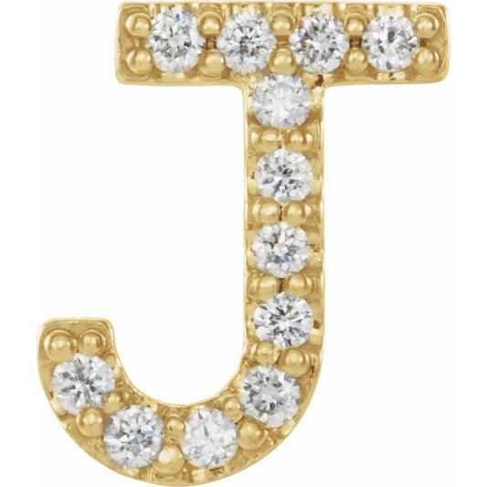 14k Yellow Gold Diamond Single Initial J Earring (Only One Earring Piece Sold, Not the Pair, 0.05 cttw, G-H, I1)