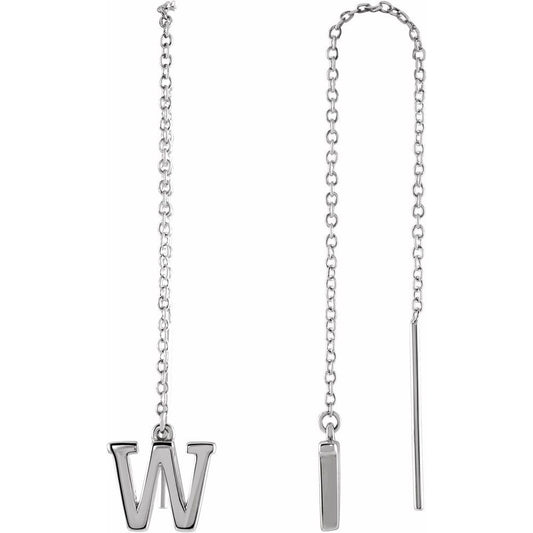 14k White Gold Single Initial W Chain Drop Dangle Earring (Only One Earring Piece Sold, Not the Pair)