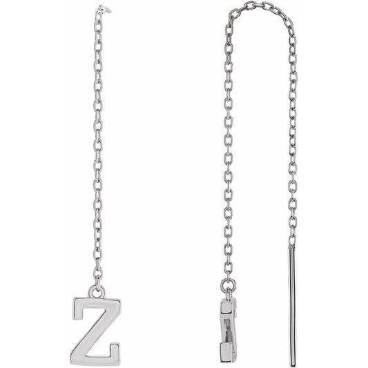 14k White Gold Single Initial Z Chain Drop Dangle Earring (Only One Earring Piece Sold, Not the Pair)