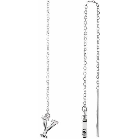 14k White Gold Single Initial Y Chain Drop Dangle Earring (Only One Earring Piece Sold, Not the Pair)