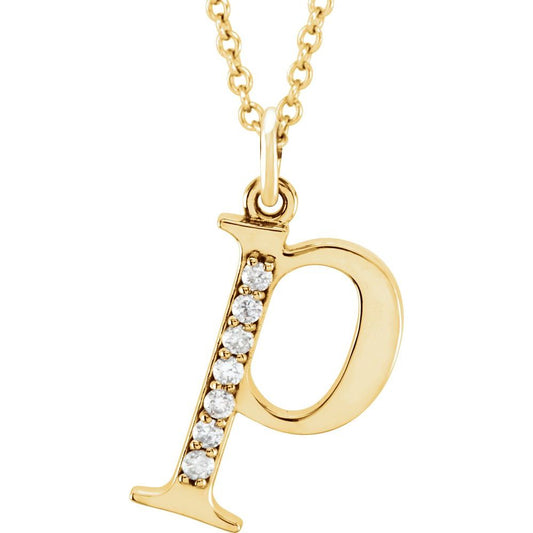 14k Yellow Gold Round Shape Diamond Lowercase Initial p Necklace (14.4x7.2mm, .03 cttw, G-H, I1), 16"