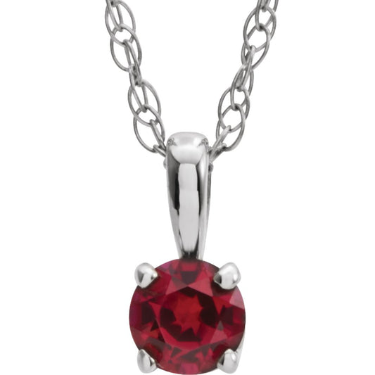 14k White Gold 3mm Round Shape Lab-Grown Ruby Birthstone Necklace (7x3.25mm), 16-18"