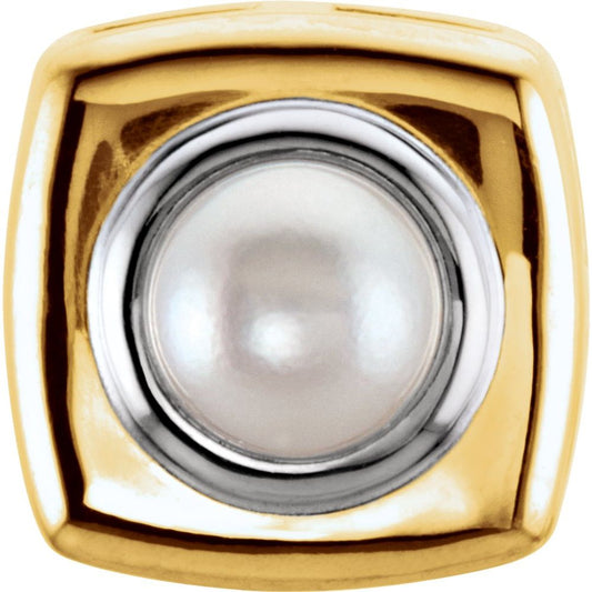 14k White and Yellow Two Tone Gold Solitaire Slide Pendant for 5-5.5mm Pearl (13.5x13.5mm, Mounting Only, Not All Stones Included)