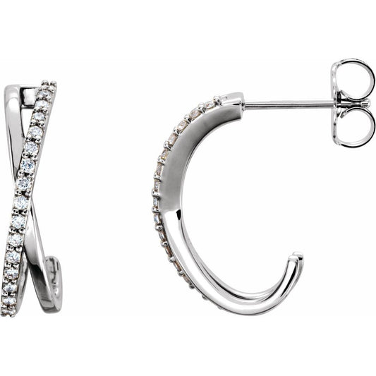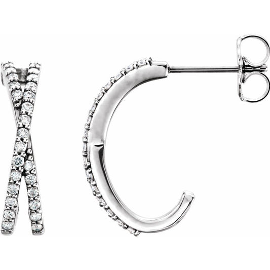 Platinum Diamond Criss-Cross J-Hoop Earrings (1/4 cttw, G-H, SI2-SI3)