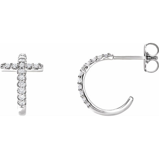 Platinum Diamond Cross Hoop Religious Earrings (1/4 cttw, G-H, SI2-SI3)