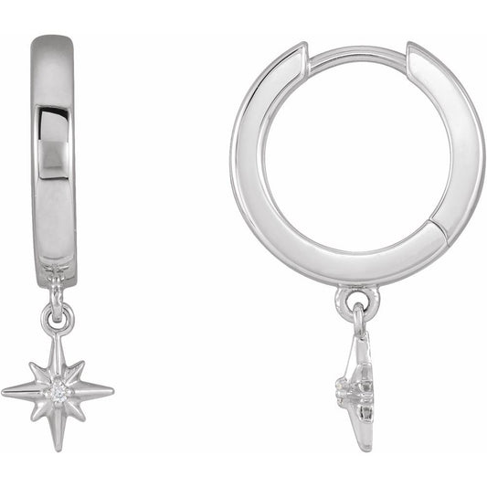 Platinum Diamond Celestial Hinged Hoop Drop Dangle Earrings (.0075 cttw, G-H, SI2-SI3)