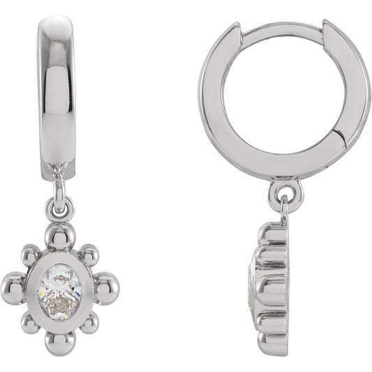 Platinum Diamond Beaded Bezel-Set Hinged Hoop Drop Dangle Earrings (1/3 cttw, G-H, SI2-SI3)