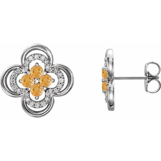 Platinum Citrine and 1/5 cttw Diamond Clover Stud Earrings