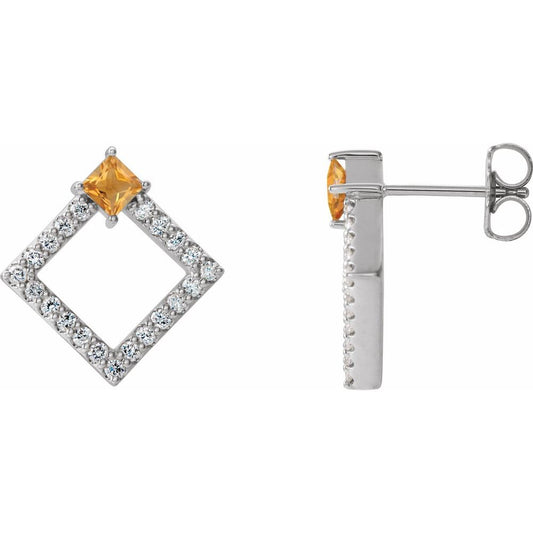 Platinum Citrine and 0.06 cttw Diamond Multi-Stone Earrings (G-H, SI2-SI3)