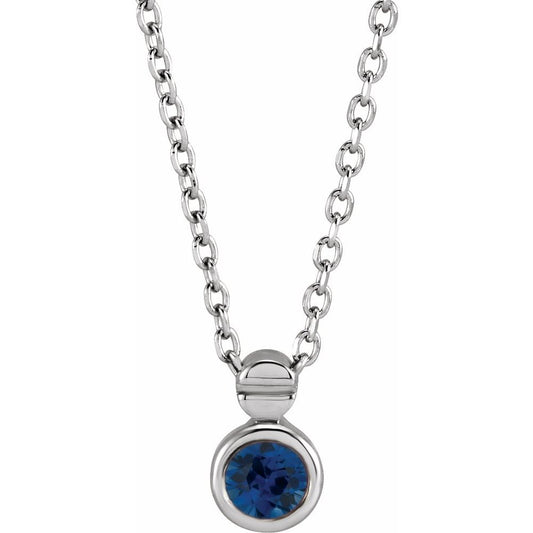 Platinum Round Shape Blue Sapphire Solitaire Necklace (10.1x4.7mm), 16-18"