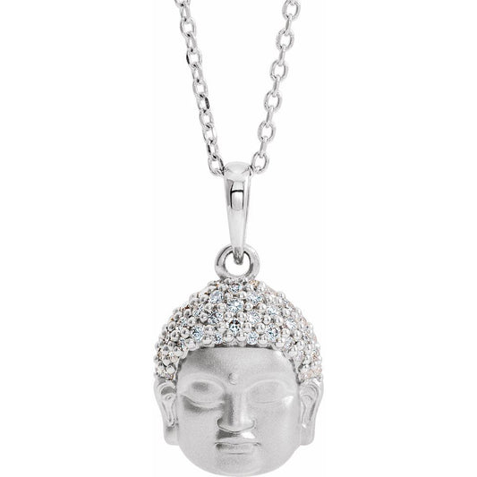 Platinum Round Shape Diamond Buddha Spiritual Religious Necklace (14.4x10.4mm, 1/8 cttw, G-H, SI2-SI3), 16-18"