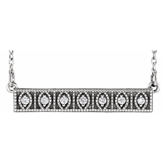Platinum Round Shape Diamond Milgrain Bar Necklace (5.45x24.89mm, .06 cttw, G-H, SI2-SI3), 18"