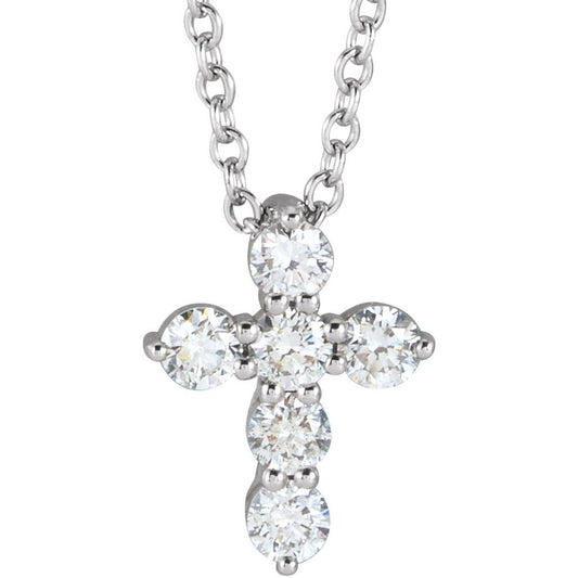 Platinum Round Shape Diamond Religious Cross Necklace (.08 cttw, G-H, SI2-SI3), 16-18"