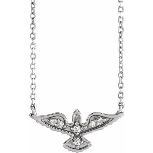 Platinum Round Shape Diamond Petite Holy Spirit Spiritual Religious Necklace (17.38x8.63mm, .05 cttw, G-H, SI2-SI3), 18"