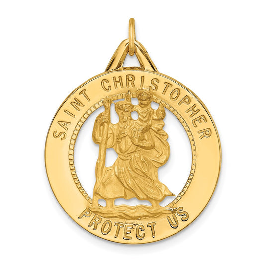 14k Yellow Gold Solid Polished/Satin Round Shape Cut-out St. Christopher Medal Pendant