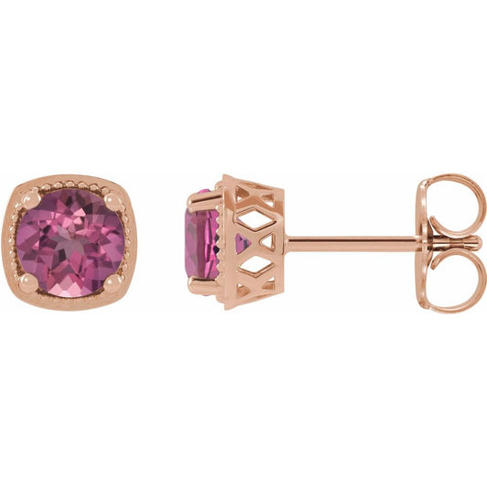 14k Rose Gold 5mm Round Shape Pink Tourmaline Claw-Prong Rope Stud Earrings