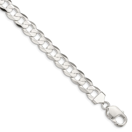Men's 925 Sterling Silver 9.75mm Concave Beveled Curb Chain Bracelet, 8"