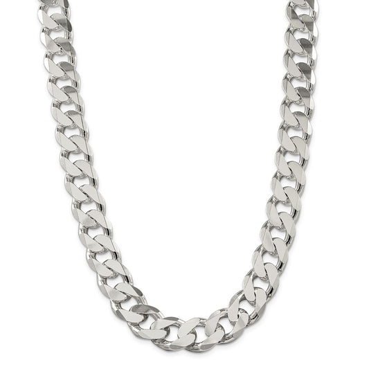 Men's 925 Sterling Silver 14mm Beveled Curb Chain Necklace, 26"